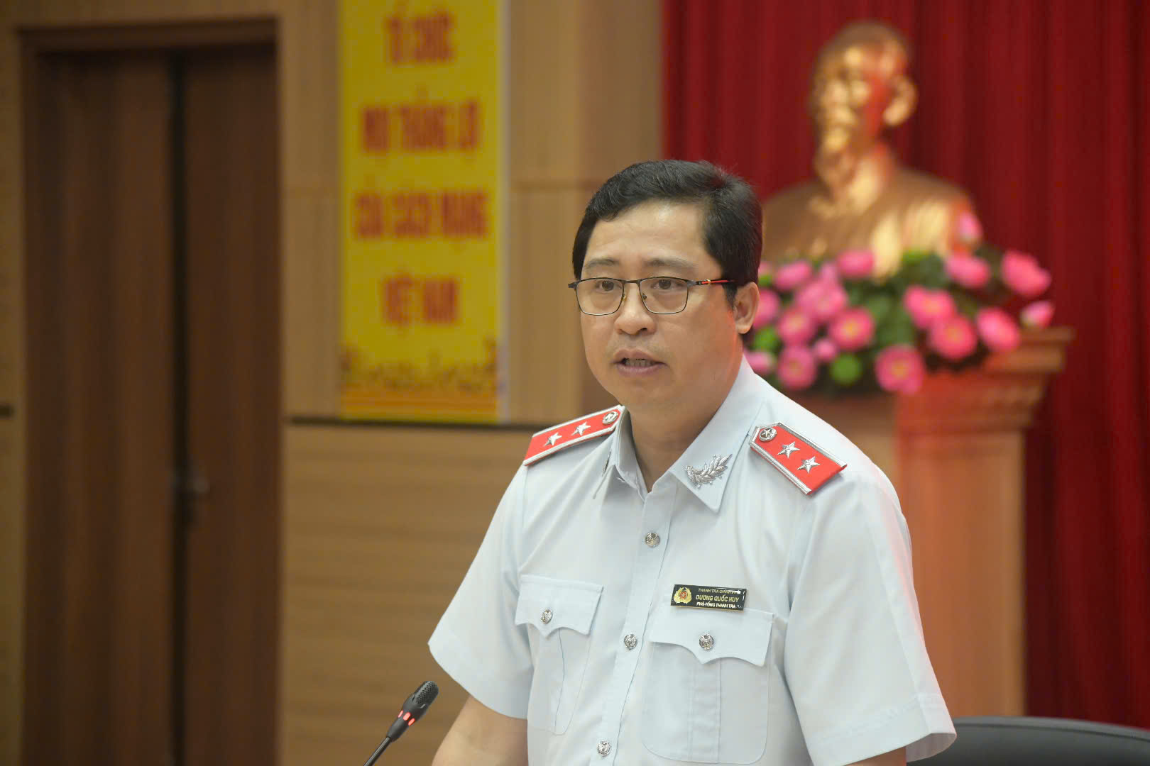 Phó Tổng Thanh tra Chính phủ Dương Quốc Huy phát biểu chỉ đạo tại buổi công bố quyết định thanh tra. Ảnh: Huy Trần